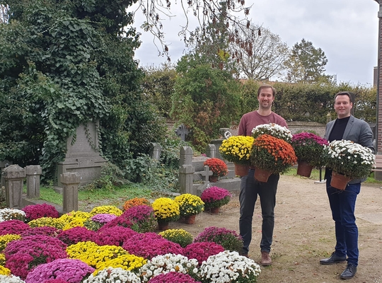 Tijdens Kikumatsuri, oftewel het Chrysantenfestival, wordt de Japanse Tuin elk jaar versierd met chrysanten, een bijzondere bloem in de Japanse cultuur. “Bij de sluiting van de tuin zijn die bloemen echter nog in perfecte staat. Daarop ontstond de idee om deze te gebruiken voor onze kerkhoven. Graven die tijdens de Allerheiligenperiode geen bloemetje kregen, worden op die manier toch nog opgefleurd,” aldus Laurence Libert, bevoegd voor Kerkhoven en Begraafplaatsen.